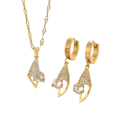 3pcs Set of Stainless Steel 18K Gold Plated-Plated Cubic Synthetic Cubic Zirconiaia Geometric Heart Earrings, Ins Light Luxury Romantic Style, Vintage Minimalist Fashion Trend, Versatile for Women and Couples, Suitable for Street, Daily Commute