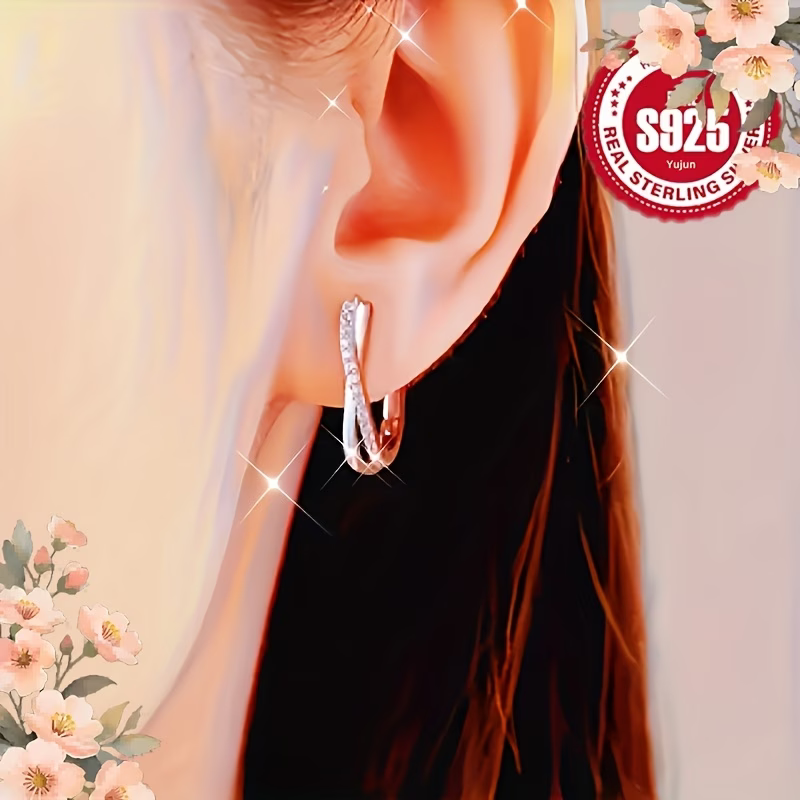 1 Pair of 925 Sterling Silvery Twisted Synthetic Zirconia Earrings, Fashionable and Bold Design, Ideal for Daily Wear